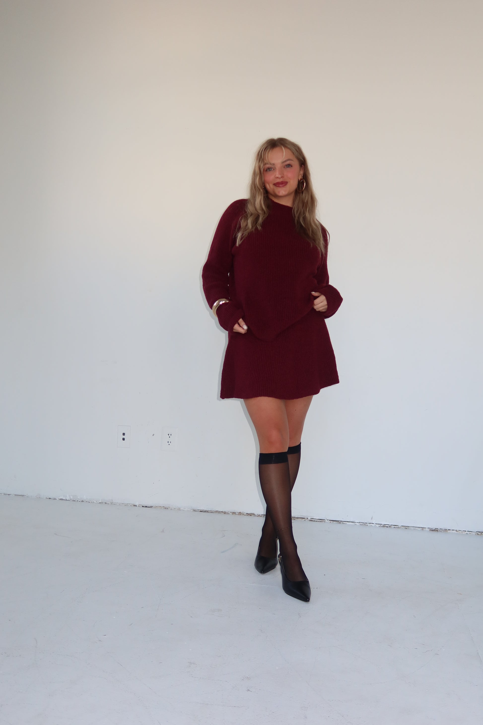 Step into the holiday season in total style with our newest must have This chic, ultra-trendy combo is made from a luxe, thick knit that keeps you warm while still looking effortlessly polished. Zero sheerness, zero worries just a flawless, festive fit.
